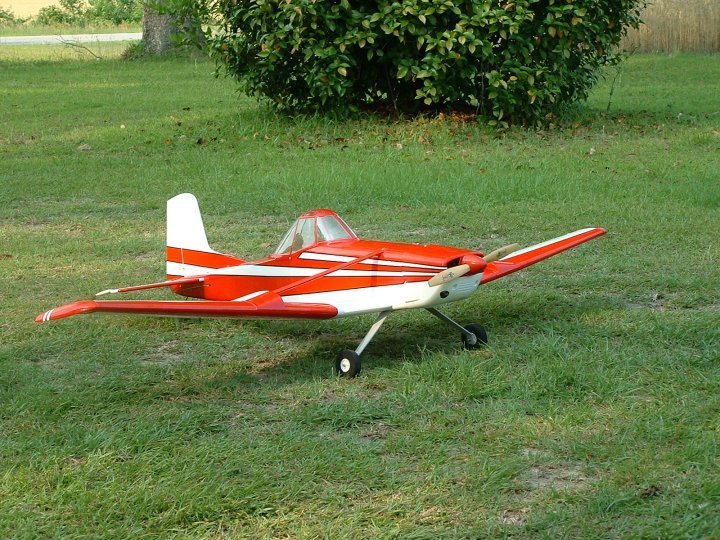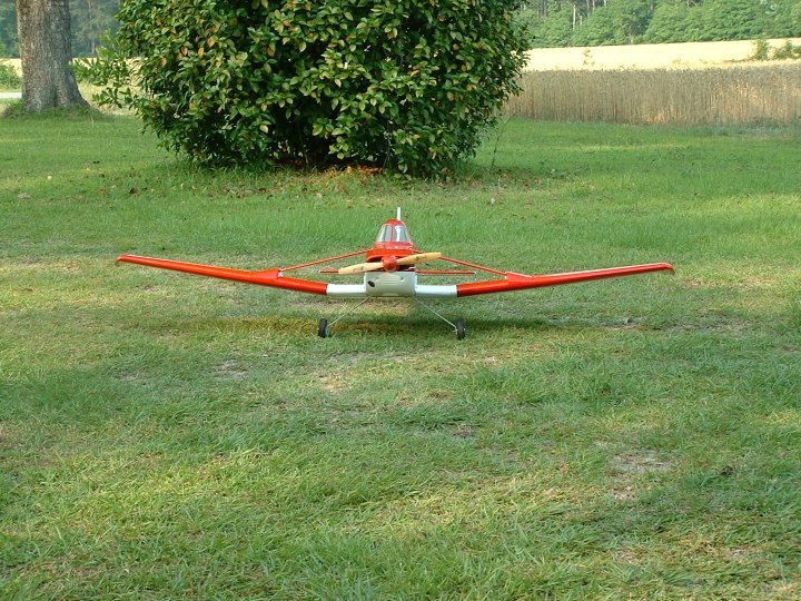 A sport scale model of one of the more famous Agri planes flown today. These are the plane we see flying just a few feet above farm fields, pulling sharply up at the end to avoid the trees, and depending on how daring the pilot is, sometimes seen sneaking under powerlines that cut through the middle of the fields all over the place. WIngspan is 68.9 inches and the weight came out at just under 6 pounds. I chose the OS 48 four stroke for power for pretty decent flight performance. All that is missing is the pilot and I've got just the one to put inside, Capt'n Eddie himself is going to be the lucky pilot.