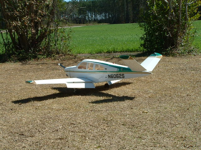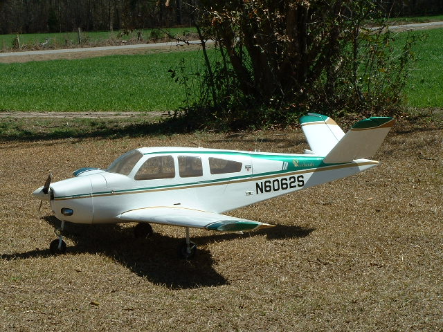 The Top Flite Beechcraft Bonanza built as the V-35. This kit can be built as either the V-tail or the straight tail version of the Bonanza. This V-tail is powered by an OS Max Surpass 120 with pump. It also includes both navigation and landing lights that work as well as scale retractable landing gear and working flaps. Wingspan is 81 inches and a length of 64 inches. Weight is around 13 lbs. I have the cockpit kit that I plan to install and also add gear doors to this one to finish it out. This kit is highly sought after as Top Flite no longer produces it. I've got a backup kit on the shelf just in case!!